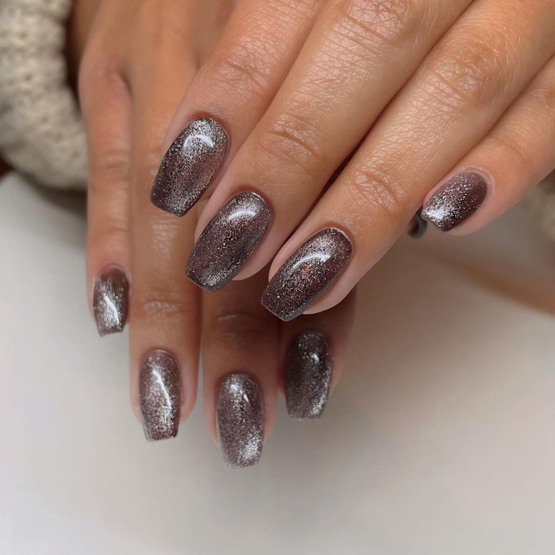 Також подивіться, як виглядає однотонний вельветовий манікюр. Тут теж можна пробувати наносити різні кольори: ніжно-рожевий, темно-зелений, сяючий сріблястий чи коричнево-сріблястий.