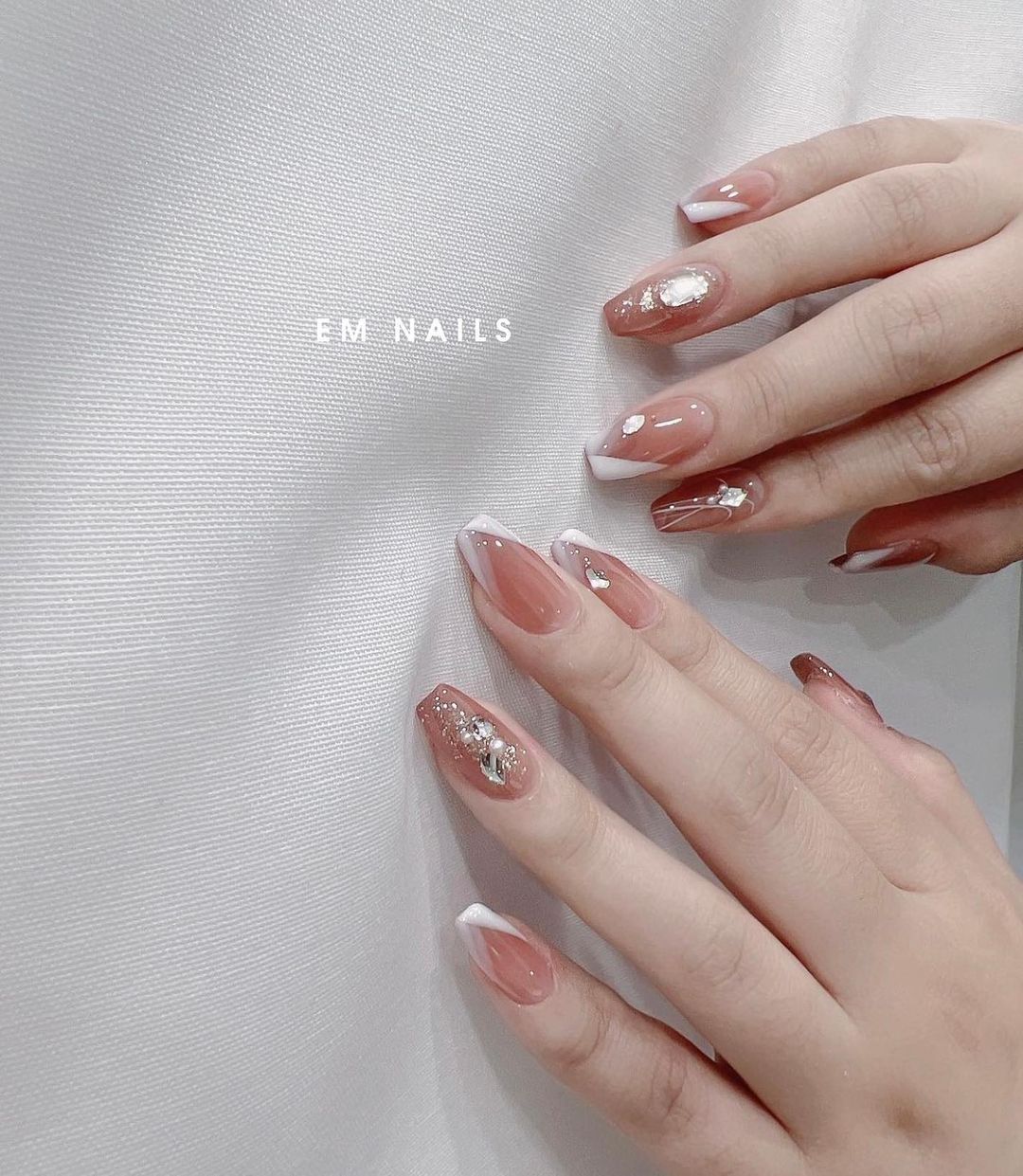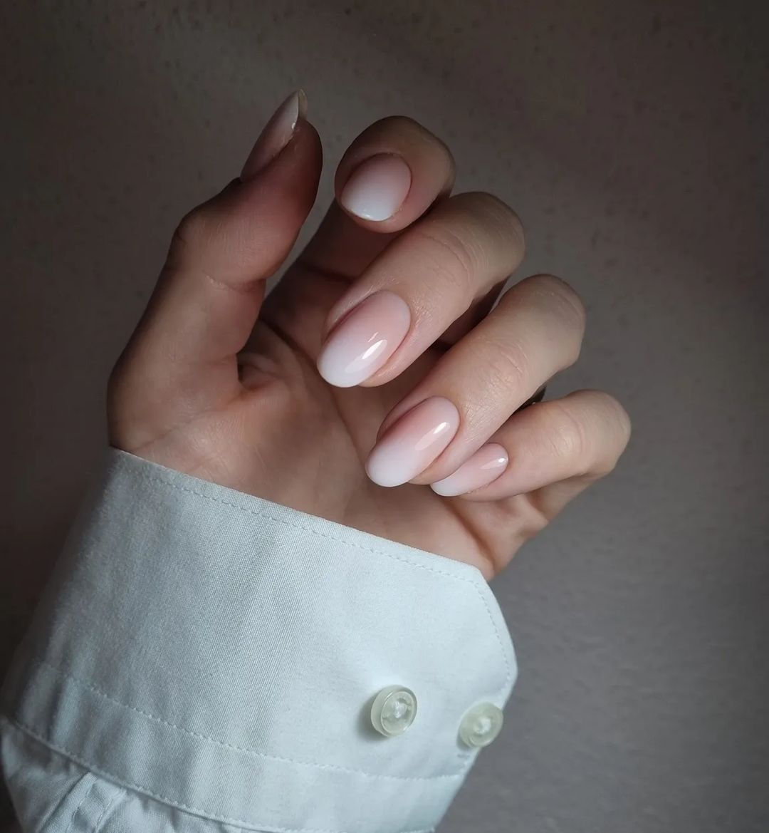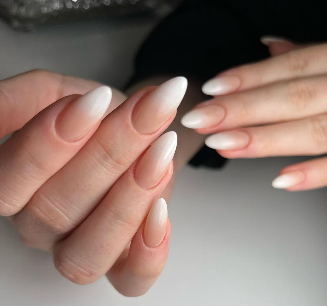 Цей варіант дизайну омбре є одним із найпопулярніших. Для його створення майстрині використовують два кольори – нюдовий та білий.