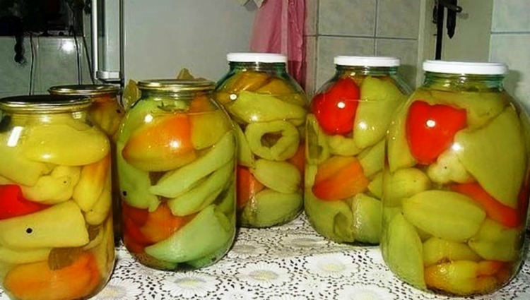 Потім акуратно дістаємо перець з маринаду, розкладаємо в стерильні 3-літрові банки і заливаємо маринадом, що кипить. Закочуємо герметично кришками, обгортаємо теплим пледом або ковдрою на добу – до повного остигання. Потім прибираємо у прохолодне темне місце до зими.