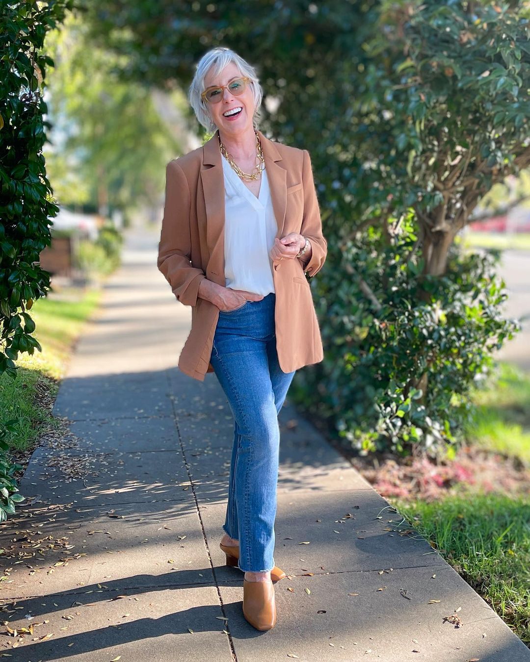 "Бойфренди" - дуже вдалий силует для жінок віком від 50 років. Вони облягають фігуру в області талії та стегон, а потім стають вільнішими та звужуються до низу. Такий фасон можна носити як із блейзером, блузкою та підборами, так і з футболкою та мокасинами.