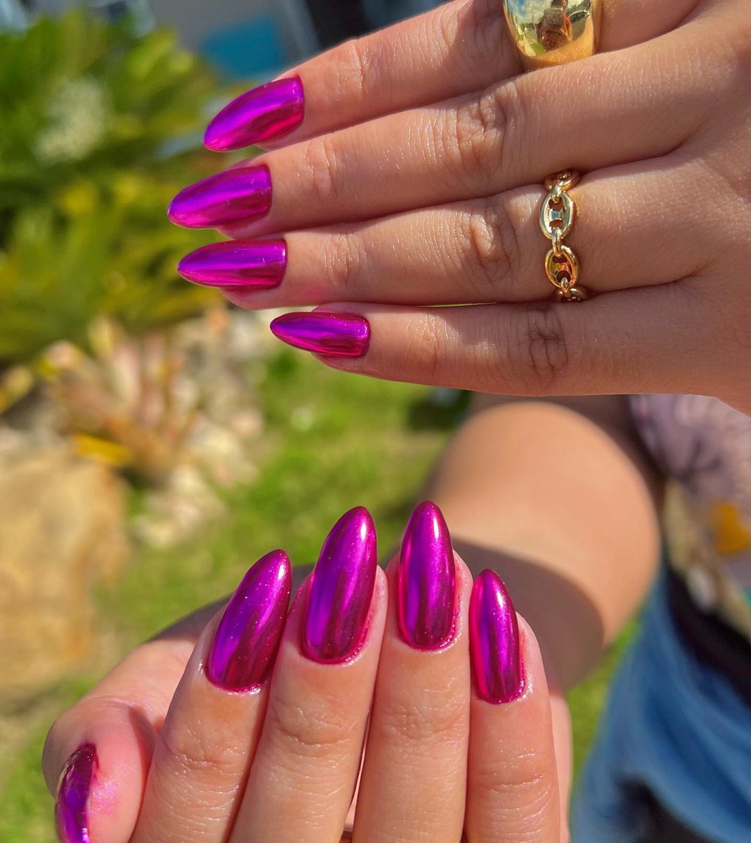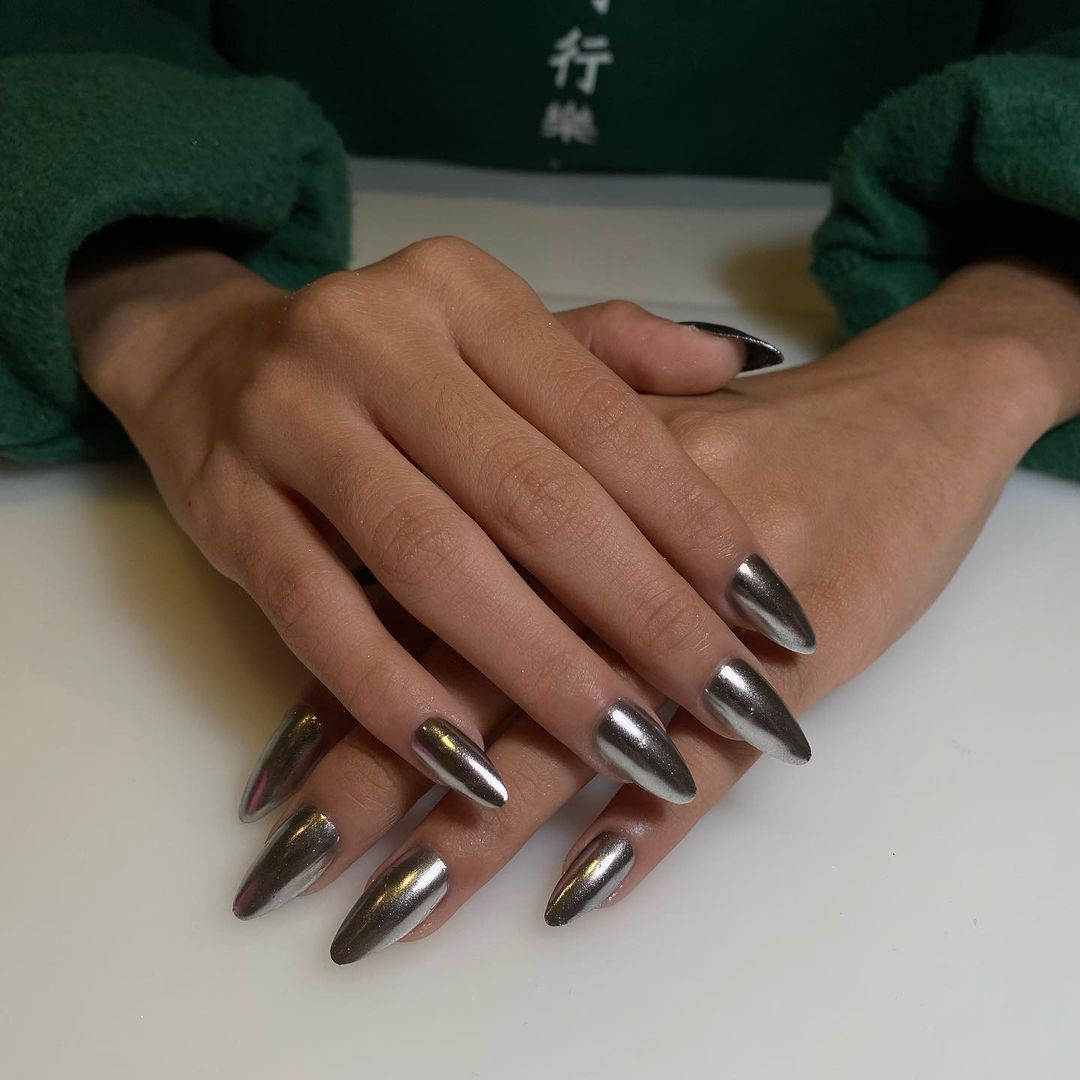 Хром - ще один тренд манікюру 2023 року, тому сміливо прикрашайте нігті лаком металік улюбленого кольору. Срібло, золото, білий та кольоровий хром будуть виглядати стильно та презентабельно.