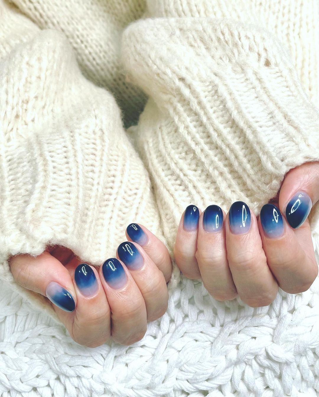 Холодні відтінки синього – чудовий вибір для зимового манікюру-2023. Синій манікюр абсолютно точно не зникне з трендів у наступному році, а також це один із щасливих кольорів у Рік Кролика. Тому, якщо вірите в удачу та феншуй – сміливо вибирайте сині та блакитні відтінки лаків.