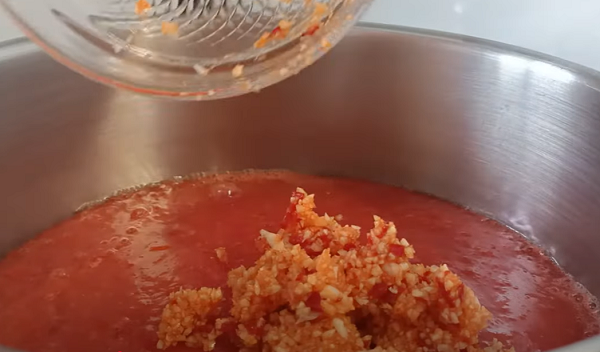 Секрет приготування досить простий, але від нього залежить смак закуски: спочатку треба приготувати томатний соус із часником, а потім в ньому треба протушкувати баклажани й болгарський перець. За гостроту в цьому рецепті відповідає свіжий перець чилі, тож важливо прибрати зі стручка насіння, щоб усе не зіпсувати. Однак його можна замінити і сушеним – так смак вийде помірно гострим.