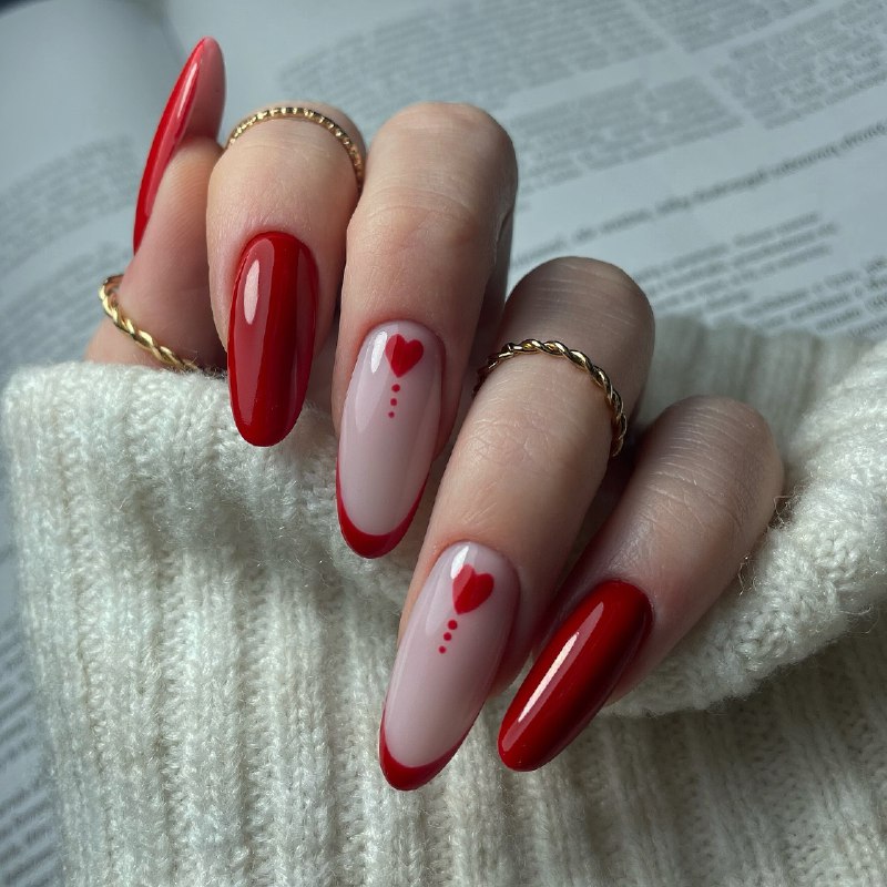Для багатьох 14 лютого асоціюється із червоним кольором. Адже саме його вибирають для зображення сердець та інших романтичних символів на листівках. Така тенденція також простежується і в нейл-арті: майстри роблять покриття у різних відтінках алого. Його також можна прикрасити незвичним дизайном із камінням чи стразами.