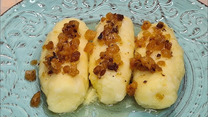 Подаємо апетитні лиганці зі сметаною, шкварками та смаженою цибулею.