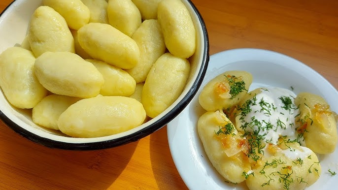 Інгредієнти: картопля (1 кг), яйце (1 шт.), сметана (1 ч. л.), крохмаль (300 г + 30 г), сіль, чорний перець.