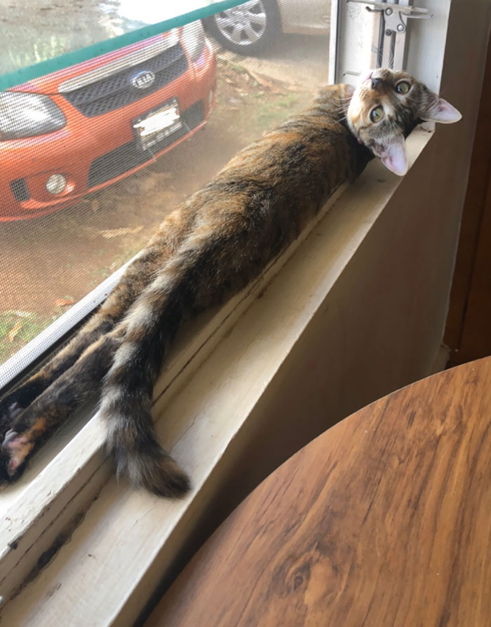 Користувачі соцмереж діляться сміховинними знімками своїх довгих котів та кішок, які, здається, можуть витягуватися до нескінченності. Доволі скоро обмін фотографіями перетворився на справжній флешмоб - господарі вихованців змагаються, у кого довший кіт.