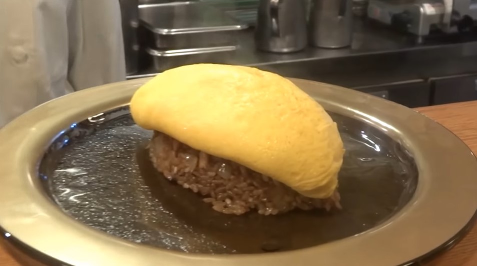 Блюдо в кадрі - це омурайс (ому-райс). Інакше кажучи, смажений рис, покритий омлетом. Ця страва подають в азіатських ресторанах швидкого харчування, але для глядачів на заході омурайс поки залишається дивиною (відео дивіться нижче).
