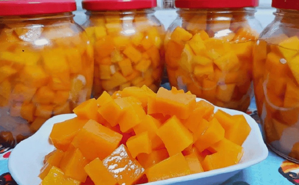 Якщо ви хочете мати екзотичне манго будь-якої пори року, ви можете запастися ним на зиму, приготувавши чудовий і оригінальний десерт. Для нього не потрібні дорогі продукти, лише гарбуз, лимон і апельсини. Це "манго" з гарбуза можна закрити в банки і ласувати, насолоджуючись домашньою екзотикою. Гарний настрій холодними зимовими вечорами вам гарантовано!