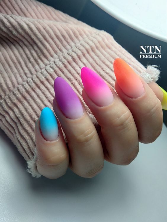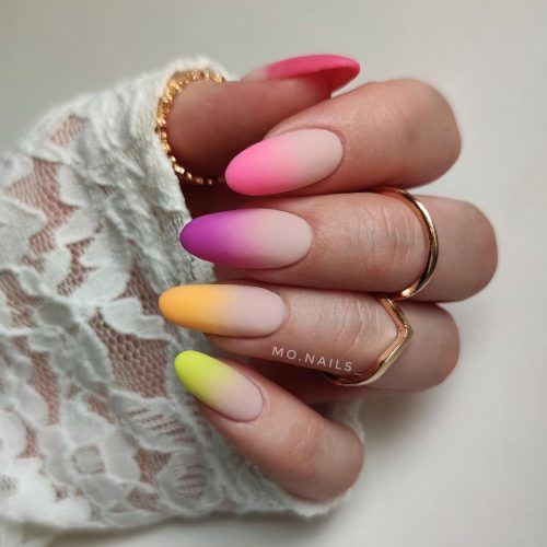А щоб створити яскравий образ, підберіть кілька відтінків і зробіть манікюр омбре на кожному нігті різними гель-лаками.