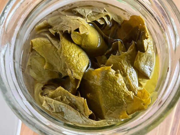 Помите виноградне листя заливаємо окропом на 5 хвилин, а потім охолоджуємо.