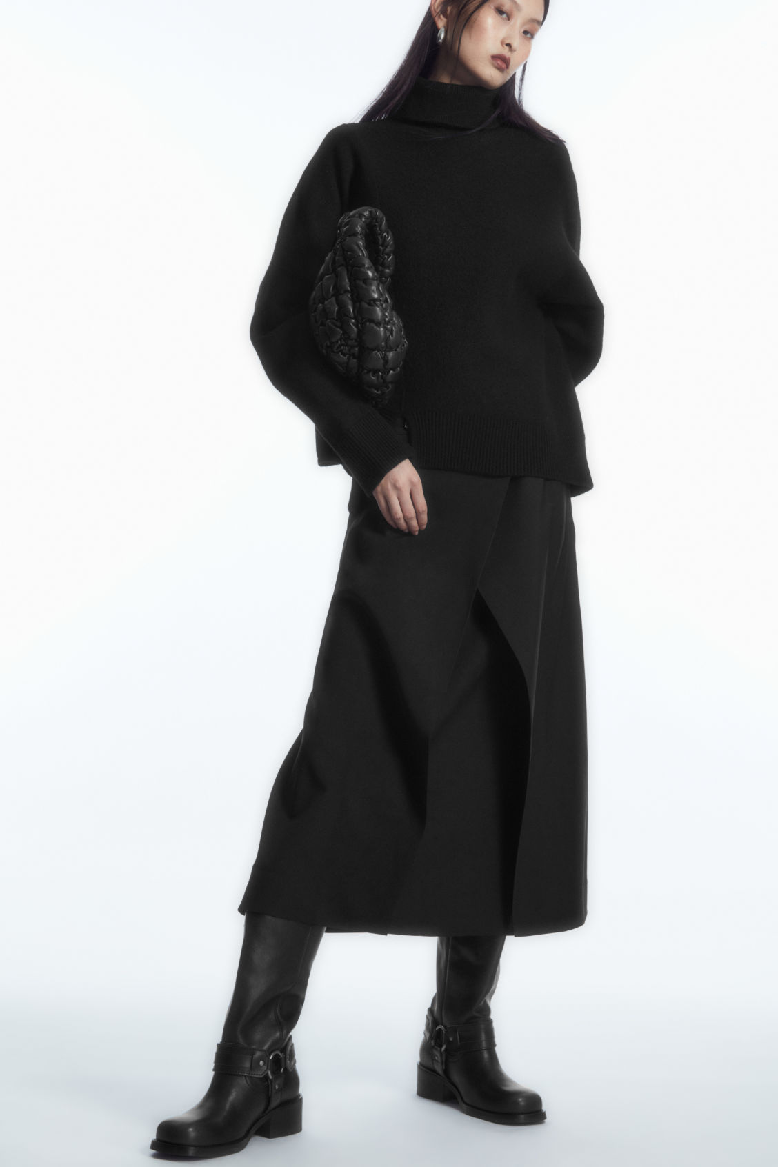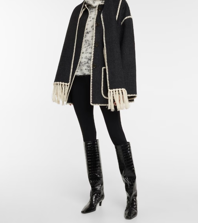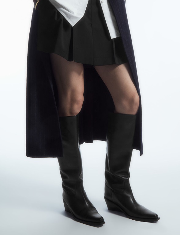 У 2024 році поєднувати чоботи вище коліна можна зі спідницями міні та масивними светрами.