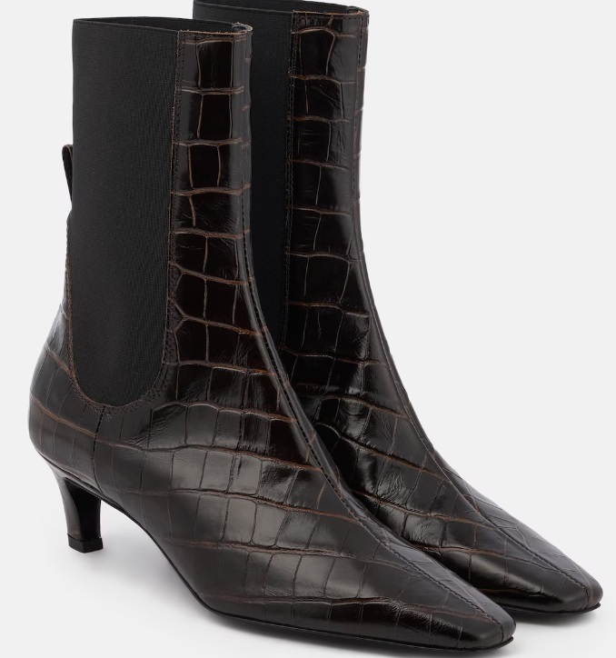 У моді також стильний тренд 1990-х – моделі з крокодилової шкіри чи з імітацією під неї. Якщо ви хочете підкреслити свою елегантність, підберіть високі чоботи, які можна носити як зі спідницями міні, так і з сукнями міді та максі. На весну можна також приглянути ботильйони під крокодила, які відмінно доповнять лук зі штанами та джинсами. Така модель особливо ефектно виглядає у коричневих, бордових та зелених відтінках.