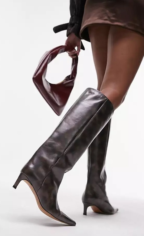 У 2024 році на піку популярності чоботи висотою до коліна або трохи нижче, вони можуть бути як шкіряними, так і лакованими. Характерними особливостями такого жіночого взуття є широка халява, гострий носок і невеликий тонкий підбор. Його часто називають каблуком-чарочкою, "каблуком Людовіка XXV", а англомовні модниці називають його "kitten heel" ("котячий каблук"). У 1930-х такі підбори носили дуже молоденькі дівчата перед тим, як перейти на шпильки. У 1950-х "котячий підбор" був на балетках і мюлях, а потім непомітно перекочував в осінні колекції.
