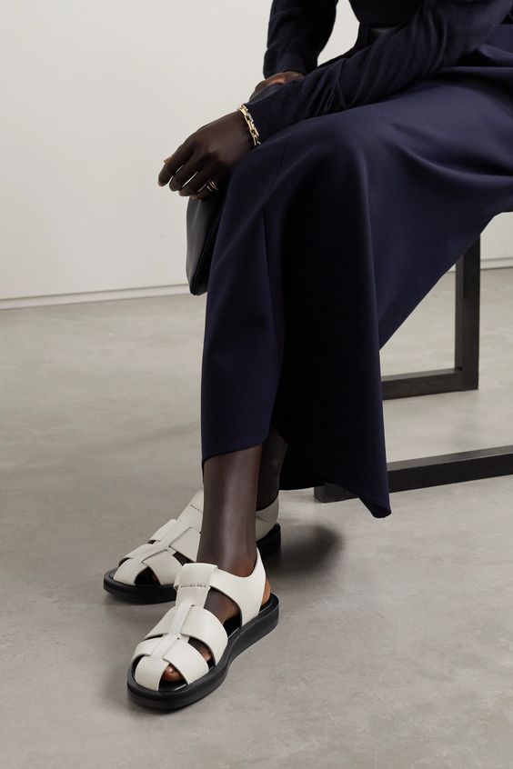 "Сандалі рибалки" зазвичай мають закритий носок, відкриту п'яту і кілька ремінців, що перехрещуються на стопі і кісточці. Дизайн нагадує сандалії, які влітку носили рибалки: їм потрібне було міцне захисне взуття, здатне витримати вологу погоду. Рибальські сандалії часто виготовляються зі шкіри або синтетичних матеріалів і можуть мати нековзну підошву для додаткового зчеплення. Вони зручні, міцні та практичні, що робить їх популярним вибором для жінок, які люблять активний відпочинок чи повсякденний літній одяг.