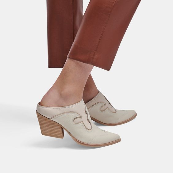 У 2023 році ковбойські чоботи стали великим трендом, і тепла погода - не причина відмовлятися від нього. Навесні та влітку модниці носитимуть ковбойські мюлі – туфлі без застібки та задника, з гострим носком, квадратним або клиноподібним каблуком.
