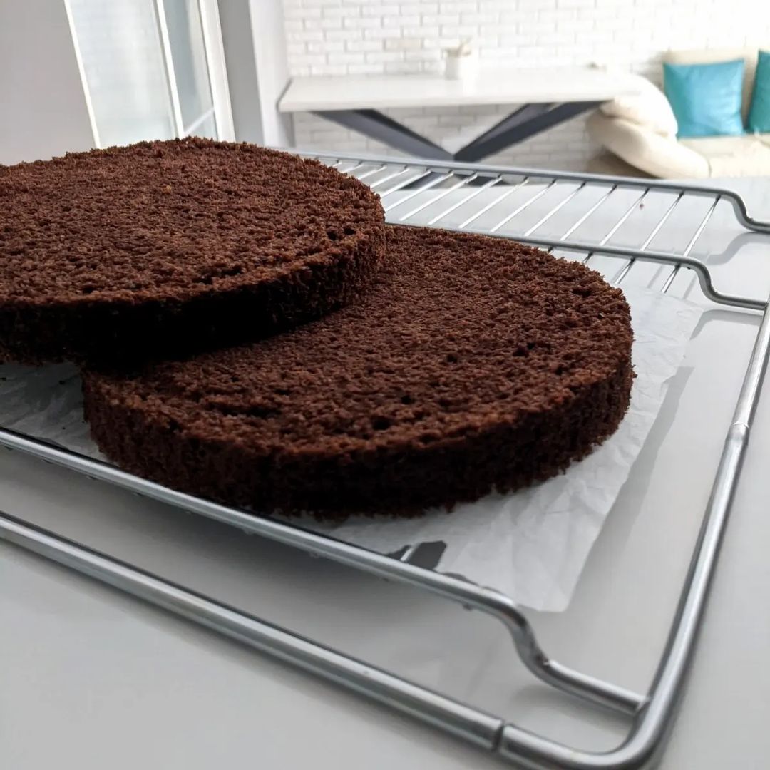 Виймаємо готовий шоколадний бісквіт і даємо йому трохи охолонути на решітці. Потім можна розрізати на два коржі для торта або подавати на стіл без крему як пиріг.