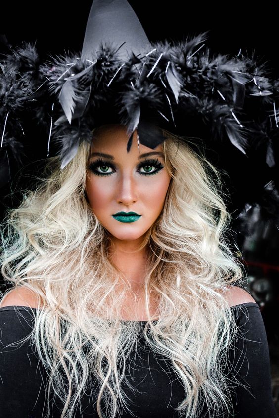 Якщо ви збираєтеся з'явитися на вечірці в образі відьми, можна зробити легкий макіяж з акцентом на очах і губах. Для цього досить виділити їх за допомогою яскравих тіней і губної помади незвичного кольору, наприклад, зеленого.