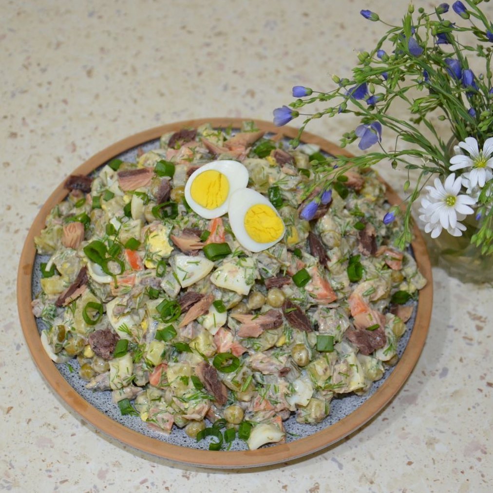 Подаємо олів'є з тунцем до святкового столу та насолоджуємося смаком.