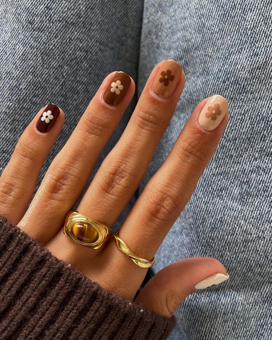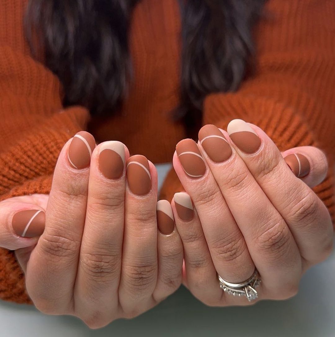 Говорячи про матові нігті, можна обрати абстрактний манікюр кольору підсмаженої карамелі.