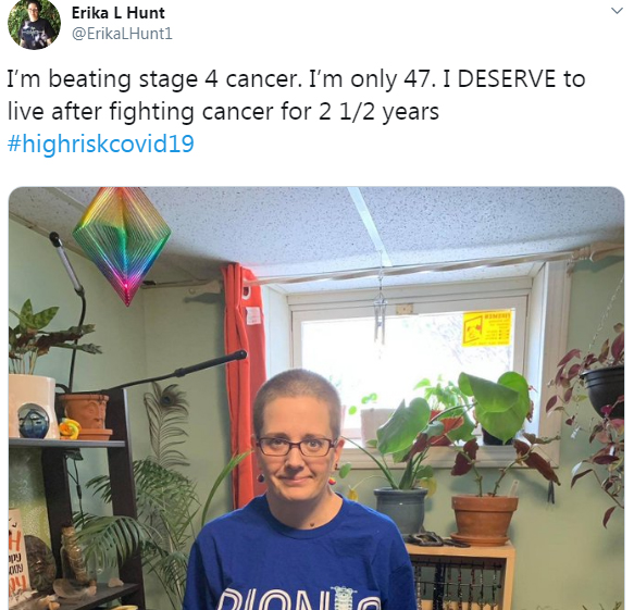 "Я борюся з раком 4 стадії. Мені тільки 47 років. Я заслуговую на життя після двох з половиною років боротьби з раком".