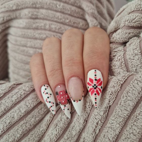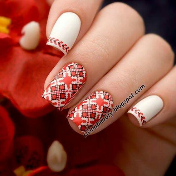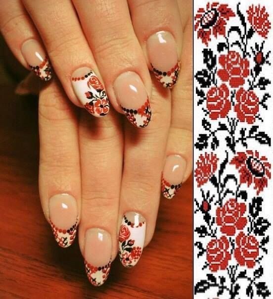 Також можна зробити гарний манікюр із візерунком у вигляді вишиванки біля основи нігтів.