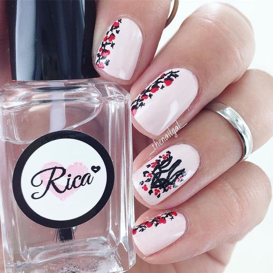 Такий дизайн можна намалювати від руки або використовувати спеціальні наклейки і стемпінг – тобто перенести на ніготь за допомогою штампу малюнки з трафарету.