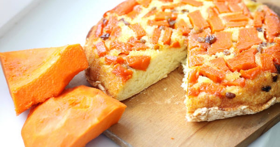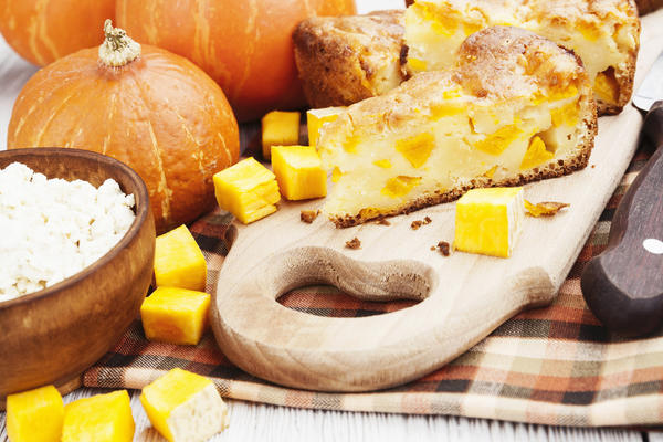 Інгредієнти: гарбуз (200 г), яйця (3 шт.), борошно пшеничне (1 склянка), цукор (1 склянка), олія рослинна (1 ст. л.), мелений мускатний горіх (0,5 ч. л.), розпушувач для тіста (1 ч. л.), вершкове масло (для змащування форми).