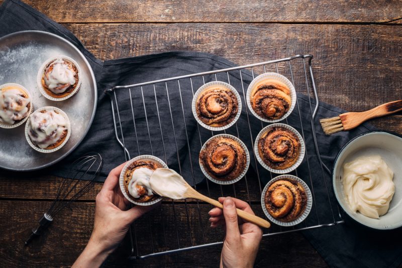 Заздалегідь розігріваємо духовку до 180°C. Ставимо деко з сіннабонами в гарячу духову шафу і випікаємо приблизно 30 хвилин. Важливо не пересушити їх.
