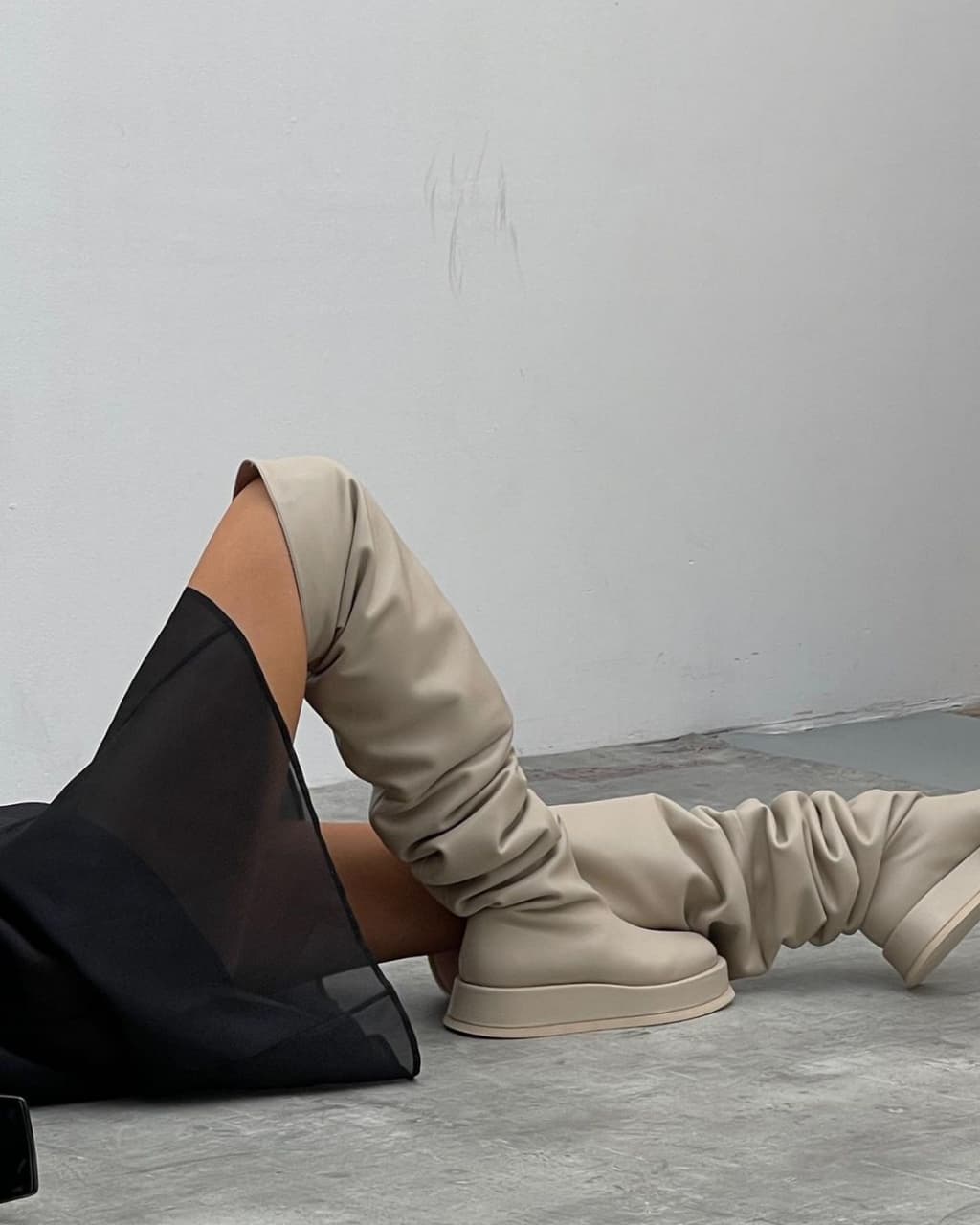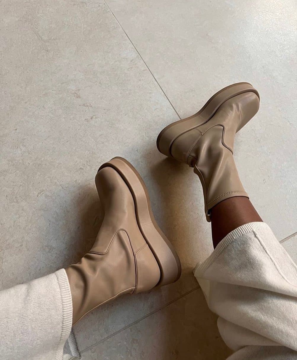 Законодавці моди не мають єдиного вердикту, якої висоти має бути платформа в 2022 році: різні бренди представили своє переосмислення цього тренду. Так, модель Роузі Хантінгтон-Уайтлі позувала у чоботях і черевиках на невисокій плоскій платформі, а іспанський елітний будинок моди Loewe представив чоботи наїзника на масивнішій платформі, скошеній у передній частині. Актуальні кольори - коричневий, чорний, бежевий, сірий та їхні відтінки.