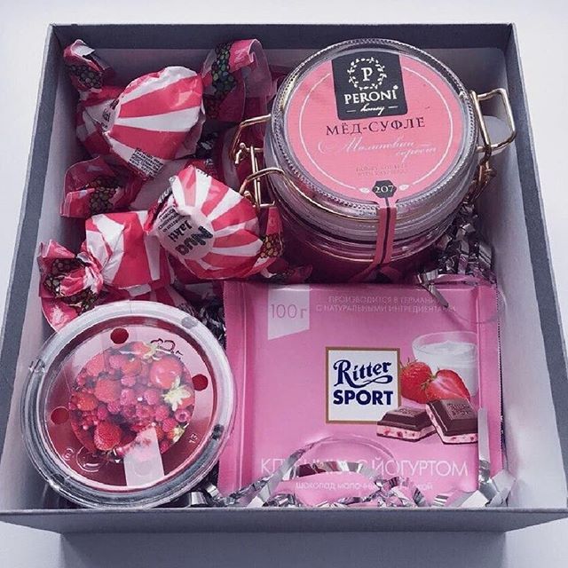Цей подарунок ви зробите своїми руками не польностью (якщо тільки не вмієте готувати солодощі), але він все одно буде цікавим і дуже приємним. Візьміть коробку, прикрасьте її подарунковій папером, стрічками або іншим декором на свій смак.