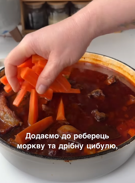 "Моркву можна додати зразу, але я люблю, коли вона не розварена, тому спочатку тушкую ребра, а потім додаю моркву та цибулю і ставлю мліти ще на годину", - додала блогерка.