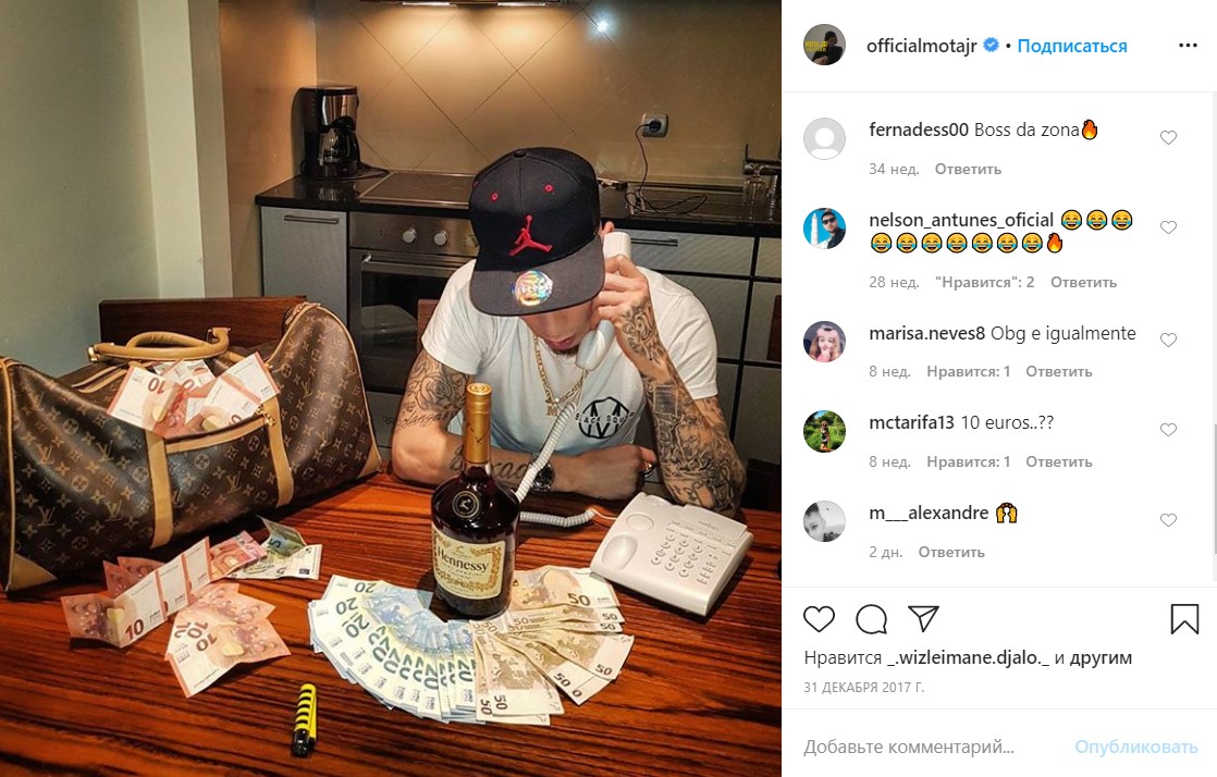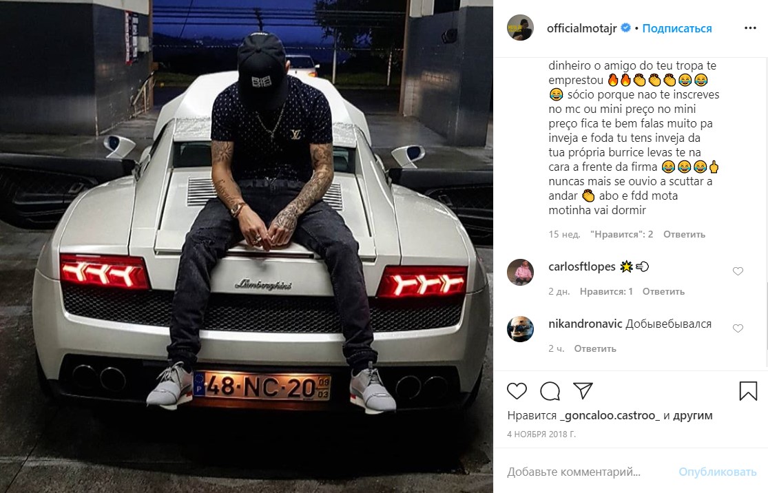 Португальська репер Давід Мота (він же Mota Jr) прославився в Інстаграм як один з наймолодших мільярдерів. Ледь не кожного дня хлопець хвалився у соцмережі дорогими автомобілями, золотими прикрасами, зброєю та пачками розкиданих банкнот. Але як виявилося, за душею 28-річного виконавця не було ні копійки. На жаль, про це стало відомо вже після викрадення.