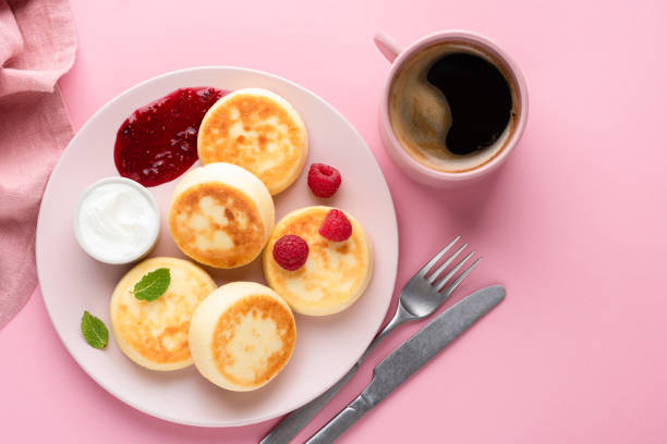 Подаємо до столу сирники з манкою з джемом, варенням, сметаною або згущеним молоком.