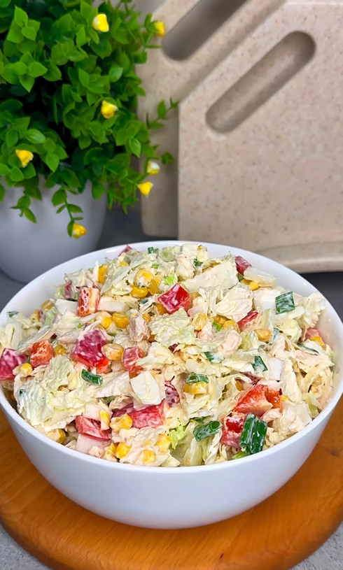 Салат з пекінської капусти з куркою та кукурудзою