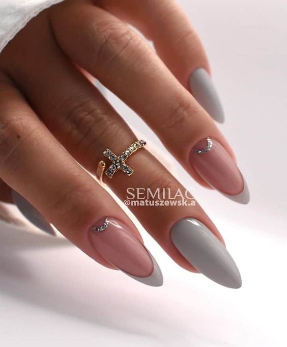 У такого манікюру є одна вагома перевага: він не такий чутливий до пошкоджень та потемнінь як білий. Тому якщо ви маєте сумніви стосовно того, що зможете носити класичний французький манікюр, віддайте перевагу сірому - отримаєте одночасно зручність та безпрограшний ніжний дизайн.