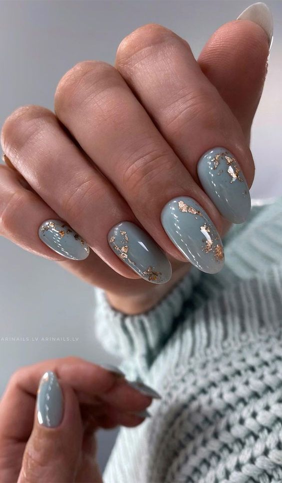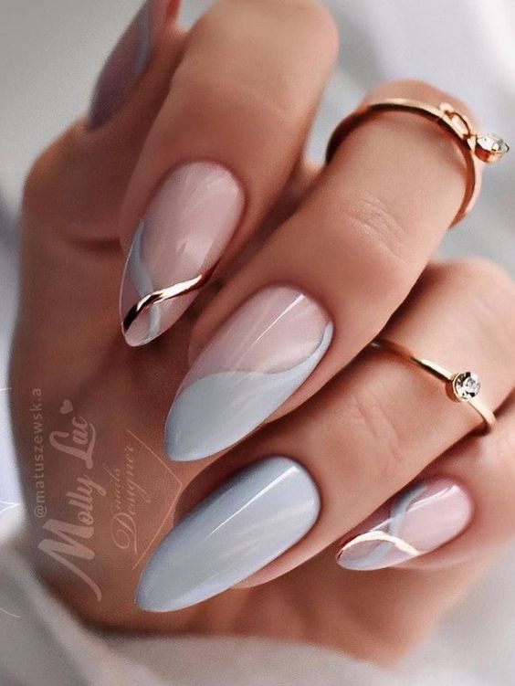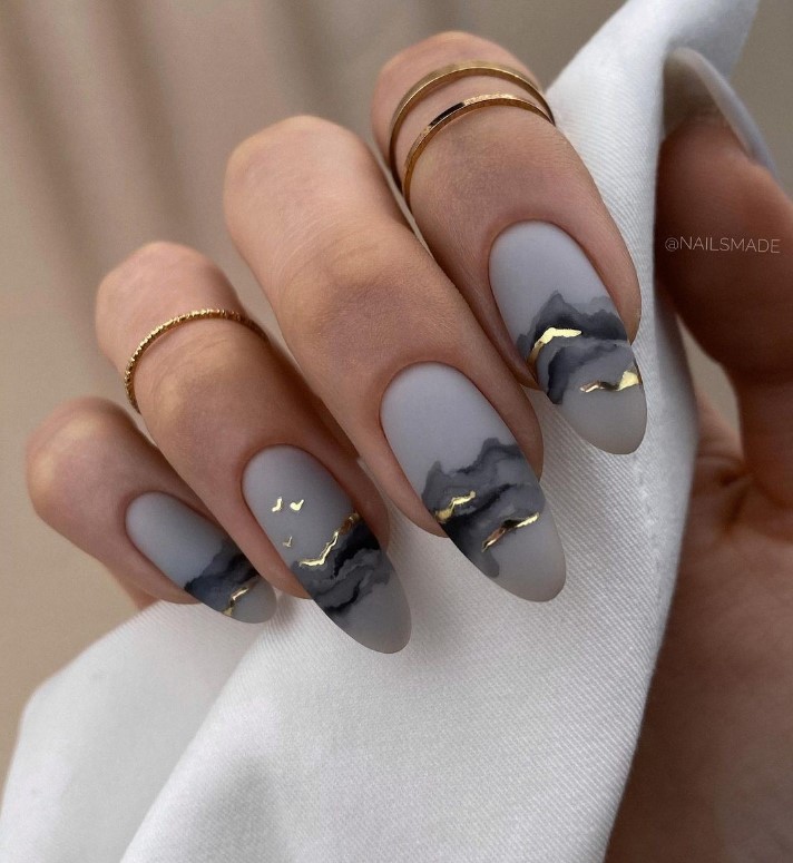 Створивши такі абстрактні малюнки на одному чи кількох пальчиках, ви отримаєте креативний дизайн, який точно приверне увагу оточуючих. До того ж, сірий у поєднанні із золотими вставками - гармонійна комбінація, яка виглядає дуже вишукано.