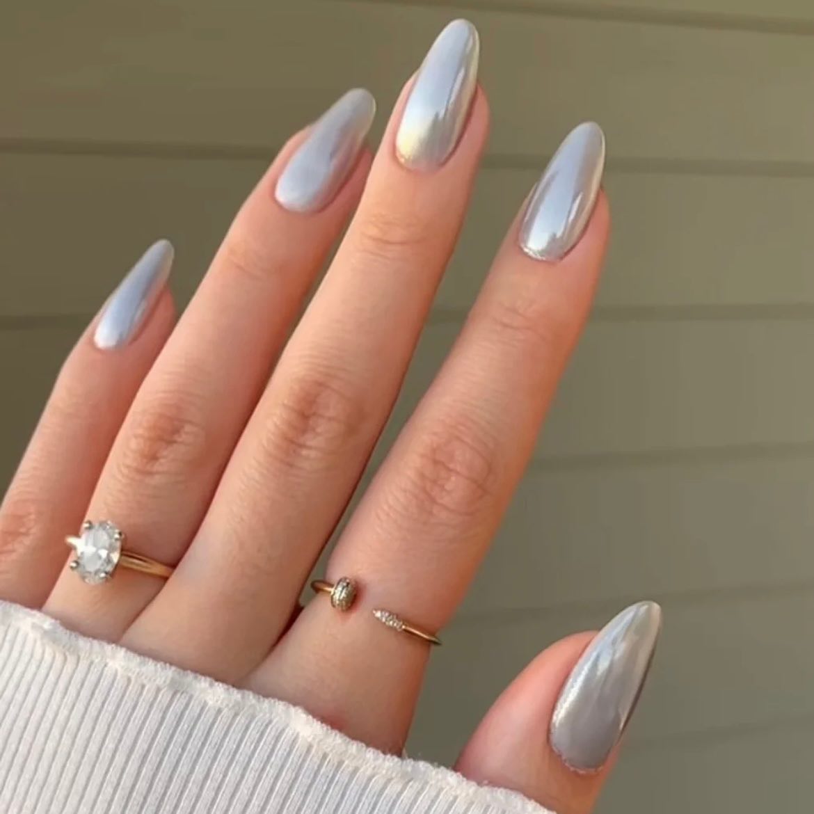 Хром не перестає бути на піку популярності, і це цілком зрозуміло, адже такий та ефект дозволяє виділитися та підкреслити образ. У поєднанні із сірим хром виглядає вдало, створюючи стильний холодний союз.