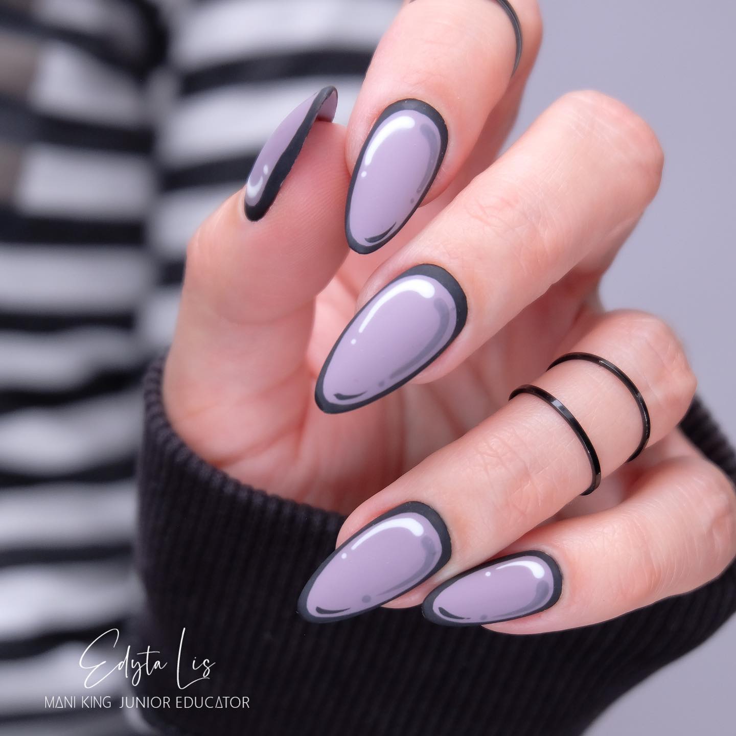 Це ще одна тенденція, яка не зникає з трендів. Це пояснюється тим, що модниці досі в захваті від мультяшного ефекту, який дозволяє створити цей манікюр та сповна насолодитися його неповторністю. Найчастіше для такого покриття використовують червоний із чорним, проте сіра основа також гармонійно вписується у це поєднання.