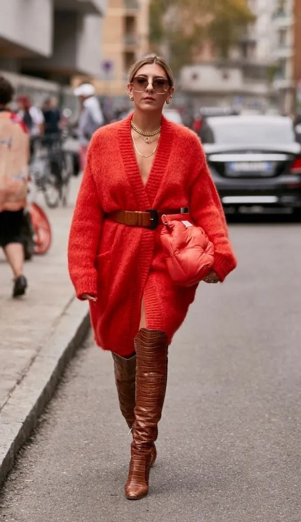 Широкий ремінь поверх кардигану або піджака оверсайз надасть вашому образу вишуканості. Це також привертає увагу до талії.