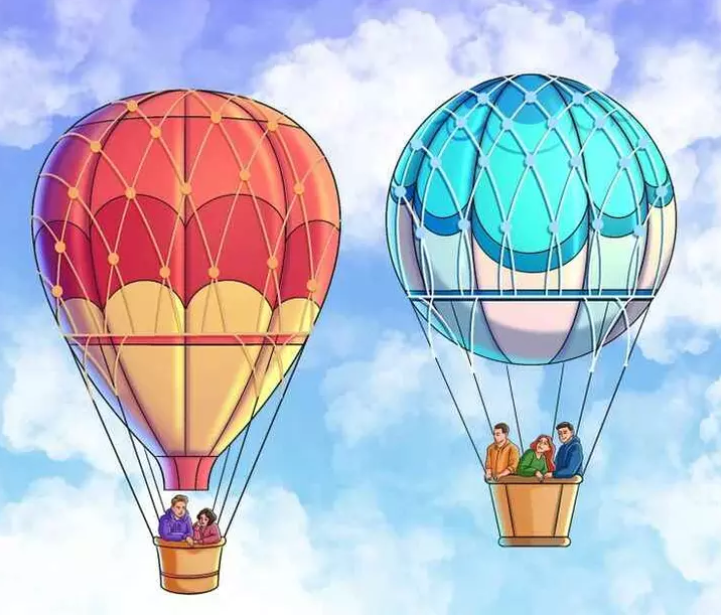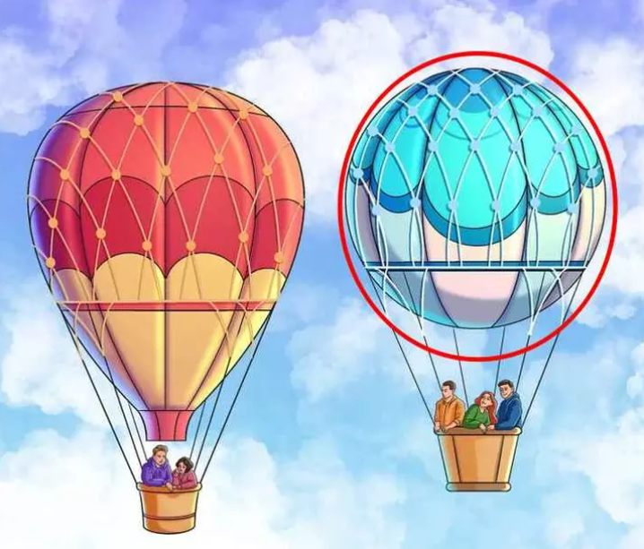 В кошику червоної кулі знаходиться троє людей, а в кошику синьої - двоє. Помилка на зображенні знаходиться буквально на поверхні, але вам доведеться добре зосередитися, щоб знайти її.