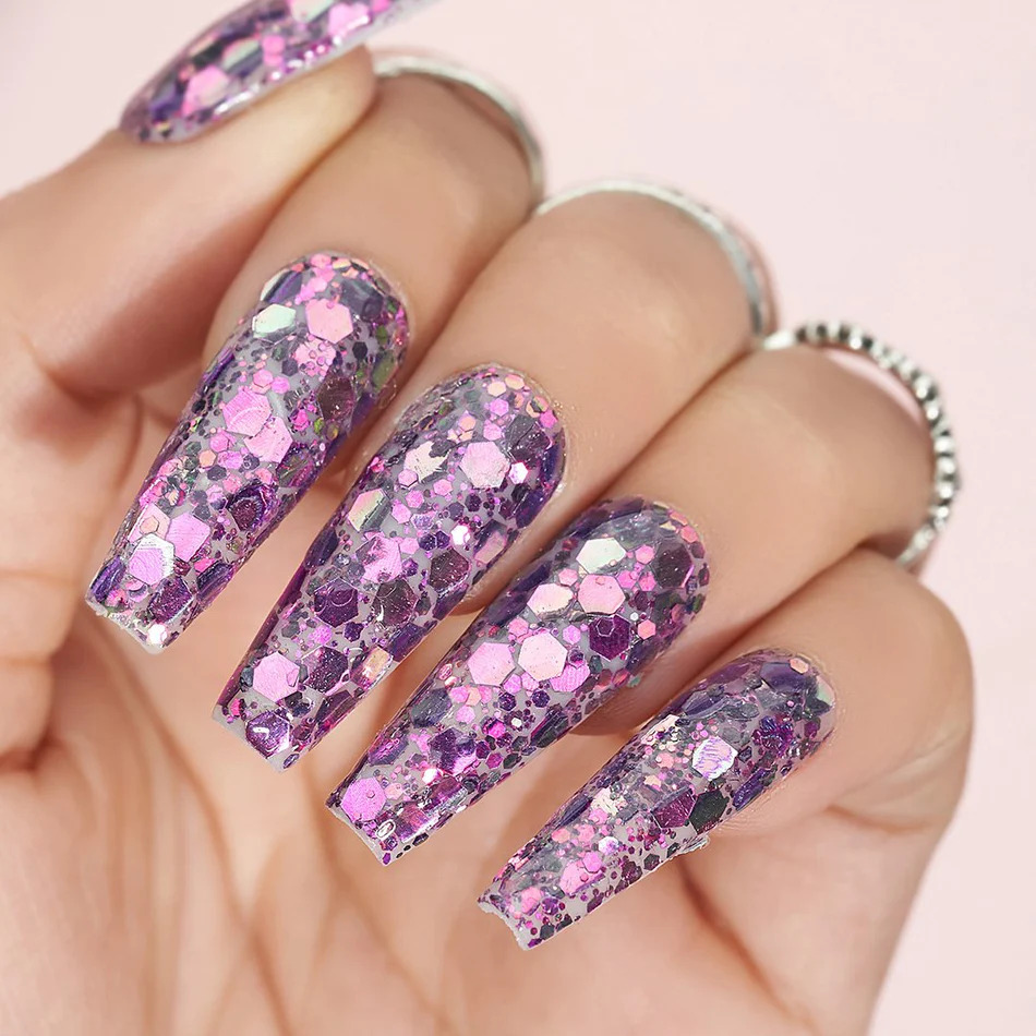 Колись лаки з великим гліттером були в моді, але тепер вони виглядають застарілими та старомодними. Натомість оберіть більш легкий блиск або металевий ефект для більш вишуканого вигляду.