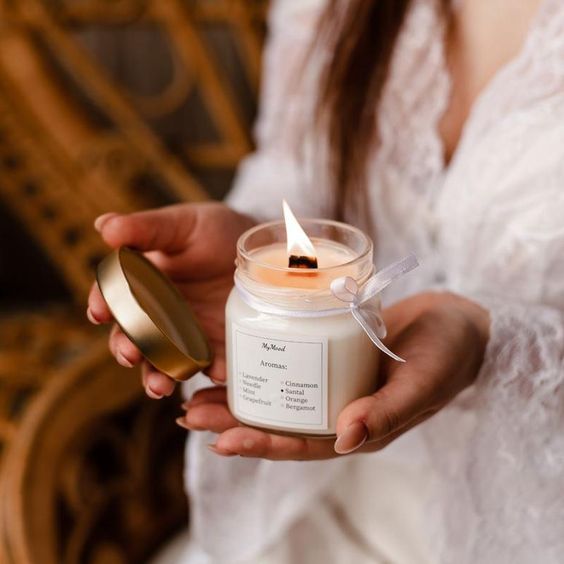 Такий виріб має справді унікальний заспокійливий та розслабляючий ефект, адже під час горіння свічка з дерев"яним гнітом делікатно потріскує, створюючи атмосферу вогнища в каміні.