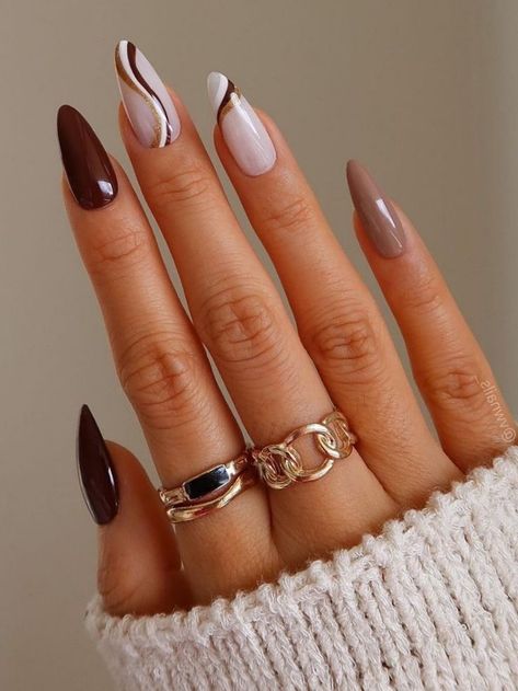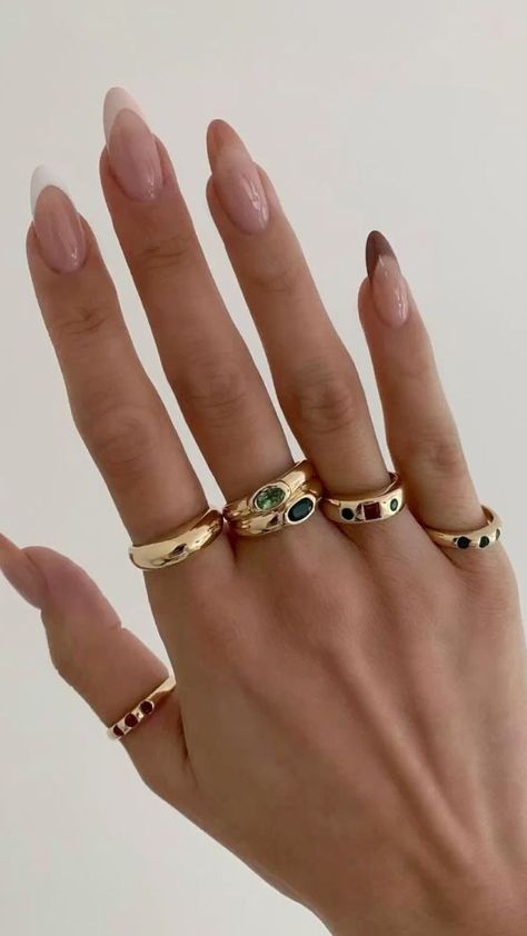 Це може бути не обов"язково класичний французький манікюр, адже білий можна замінити на коричневі відтінки чи навіть чорні. Або ж з"єднати їх та зробити кожен пальчик різним, як показано на знімках: