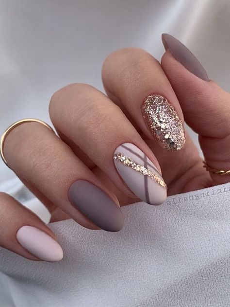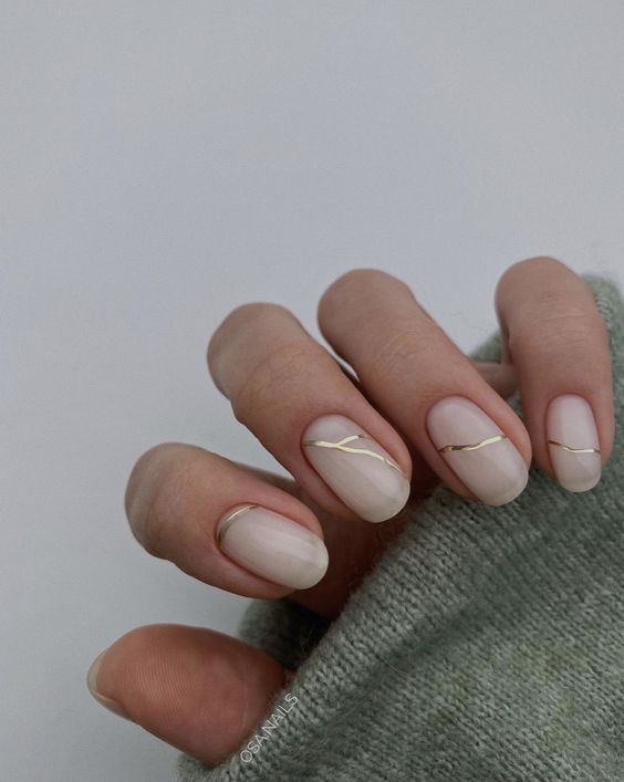 Такий варіант манікюру теж можна назвати безпрограшним, адже для його створення використовуються спокійні відтінки, які розбавляються акуратними лініями на 1-2 нігтиках.