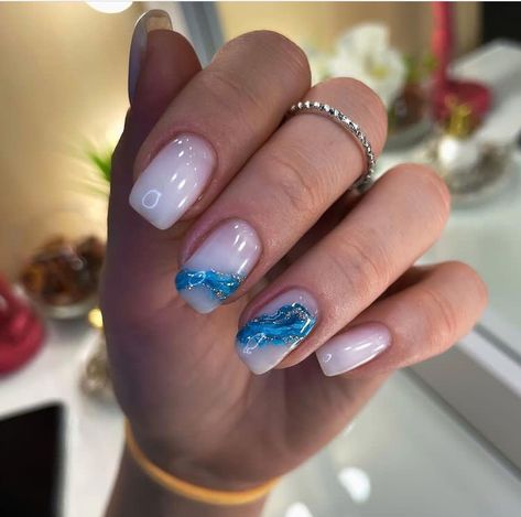 Такий варіант покриття чудово підійде для жінок, які люблять ніжне покриття, але при цьому бажають залишатися яскравими. Наприклад, основний колір – бежевий чи рожевий, тоді як дизайн може бути яскраво-блакитного відтінку чи навіть із блискітками.