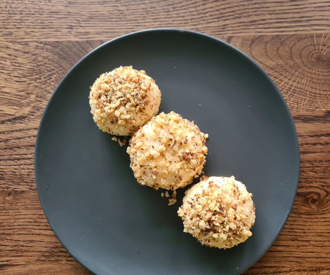 Для панірування беремо волоські горіхи та подрібнюємо їх ножем, потім трохи підсмажуємо на сухій сковороді. Знімаємо горіхи з вогню та додаємо до них корицю та цукор. Відварені гомбовці обвалюємо з усіх боків у паніровці та подаємо до столу зі сметаною.