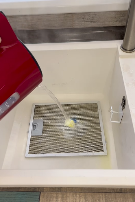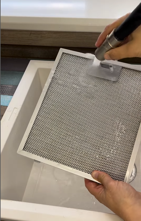 "Замочіть фільтр витяжки у ємності чи мийці разом з таблеткою для миття посуду та кисневим порошком на 15 хвилин. За цей час весь жир і бруд розчиняться, а вам треба буде лише промити фільтр чистою водою", - розповіла блогерка.