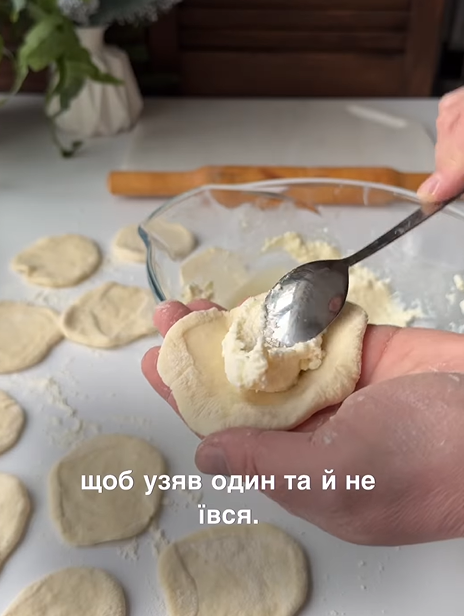 2. Ліпимо вареники. "Бабуся моя ліпила здоровенні, розміром з долоню, в дитинстві вони мені видавались просто гігантськими. Я трохи менші зліпила, але сильно теж не дрібнила", - розповіла блогерка.