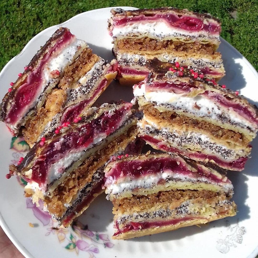 Зберіть торт "Слойка вишнево-горіхова" з подвійним кремом: